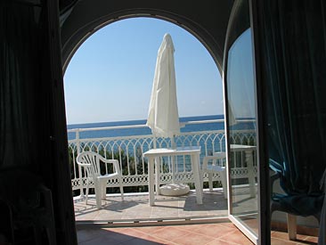 Haus befindet sich in leichter Hanglage, d.h. der Eingang ist ebenerdig, zum Garten (mit Außendusche und Liegen) gelangen Sie über eine Außentreppe (die Balkone befinden sich daher vom Garten aus gesehen im 1. Stock). Vom Garten (kein Gefälle) geht es über eine private Treppe zum Strand. Der Strandzugang wird ausschließlich von den Gästen der Villa Antonis und Villa Nicoletta benutzt.